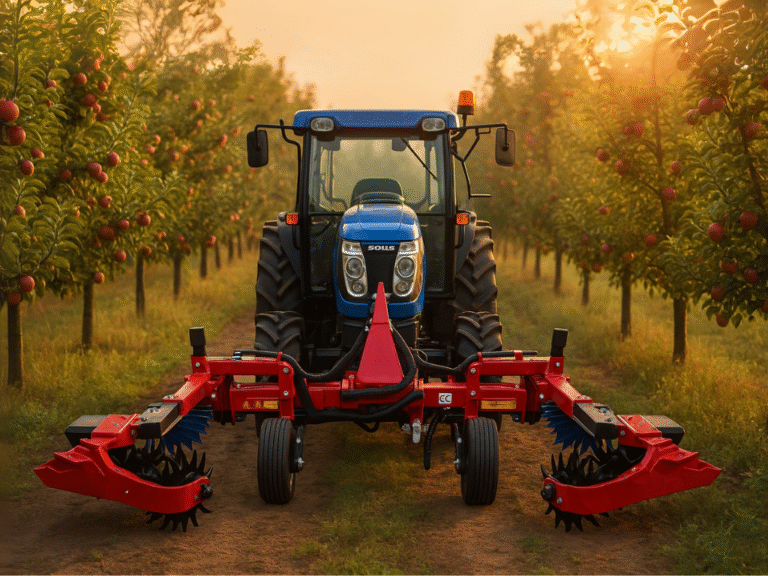 A head for mowing between rows. Equipped with a hydraulic sensor to avoid tree trunks.